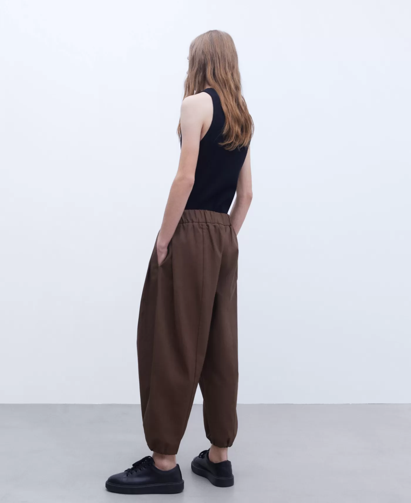 Pantalon Oversize En Algodon Encerado. Cinturilla Elastica Con Cordon. Costuras Verticales. Bajos Elasticos.Algodon Ence…