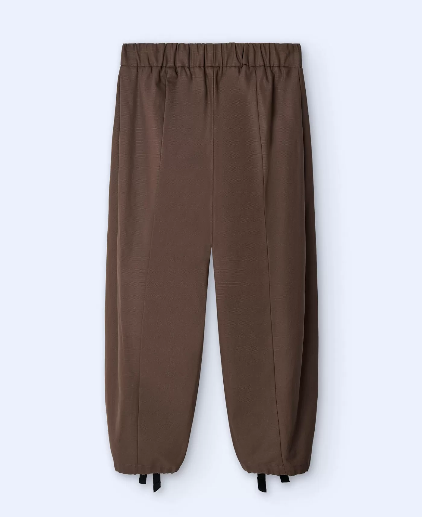 Pantalon Oversize En Algodon Encerado. Cinturilla Elastica Con Cordon. Costuras Verticales. Bajos Elasticos.