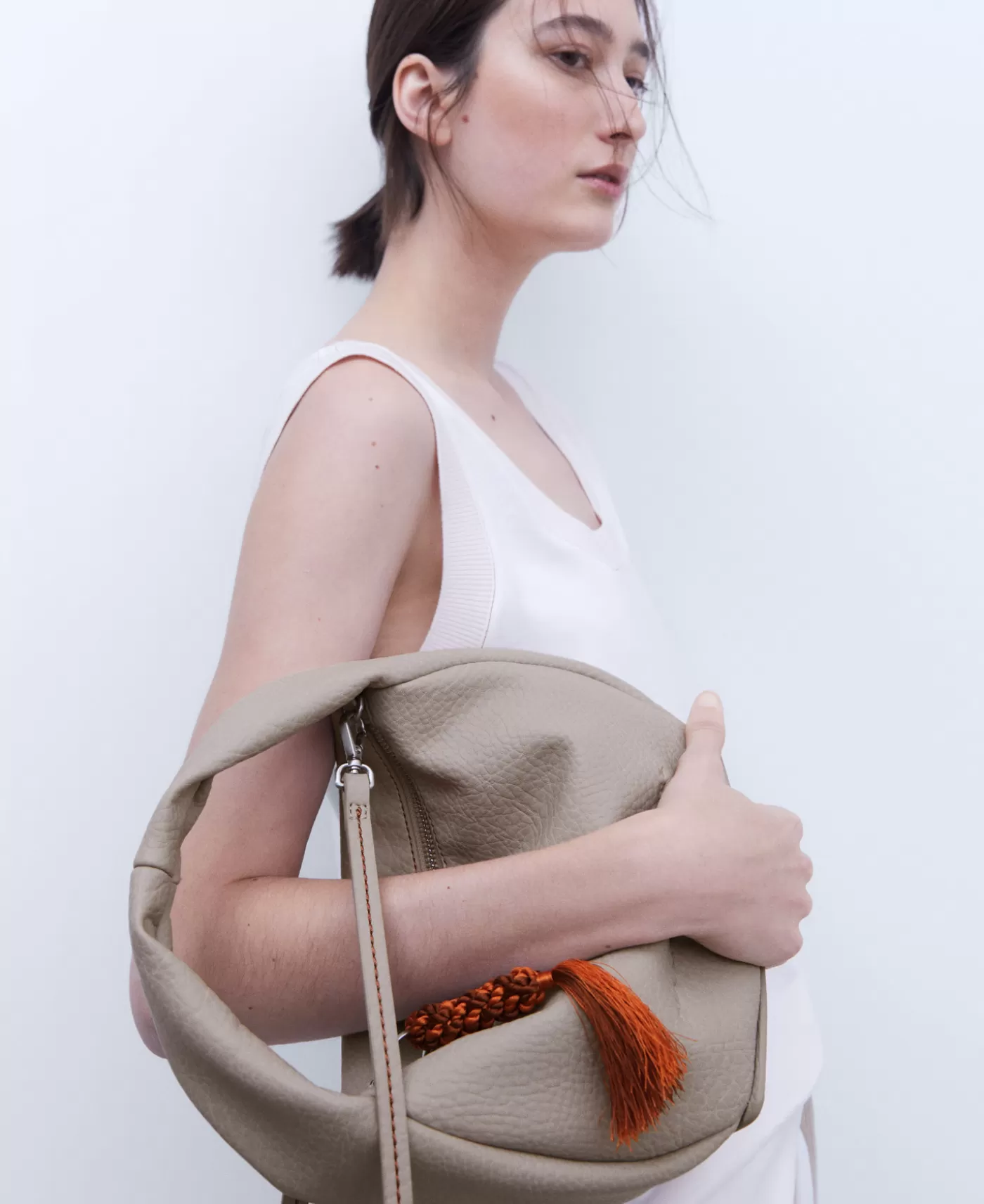 Bandolera Mediana Textura Grano En Poliester Reciclado. Asa Corta De Mano Y Asa Larga. Cierre Cremallera. Tirador Decorativo.